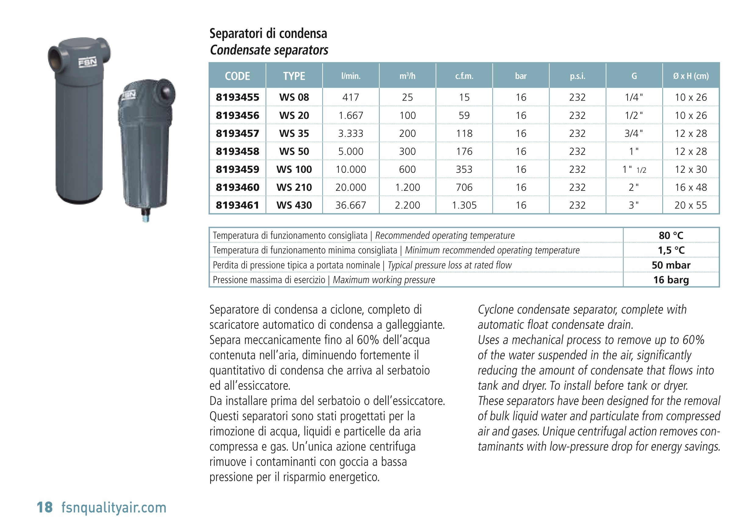 1. Απομακρύνει σε πρώτο στάδιο τα συμπυκνώματα νερού που δημιουργούνται κατά την συμπίεση του πεπιεσμένου